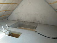 Erschütterungsfreie, bauwerksschonende Herstellung einer 2,30 m x 1,60 m großen Deckenöffnung in eine 20 cm starke Stahlbetondecke mittels Diamantkernbohr- und Sägetechnik, unter teilweise sensiblen Bedingungen (bewohntes Haus/ Holztreppe unter der herzustellenden Öffnung). Der Bauherr kann jetzt das Dachgeschoss mit den restlichen Wohneinheiten verbinden und als Arbeitszimmer nutzen.