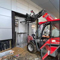 Die Rohbauer kommen … Aber keine Angst! Um sicherzustellen, dass das Alltagsgeschäft des Lebensmitteleinzelhändlers ohne Einschränkungen fortgesetzt werden kann, wurde von uns mit effektiven Wasser- und Staubschutzmaßnahmen entsprechend vorgesorgt. Nachdem unsere Monteure die Schnittend-Kernbohrungen und Ausbau-Kernbohrungen hergestellt hatten, erfolgten die Sägeschnitte mit der Hilti Wandsäge DST 20 CA an den Außenseiten der geplanten Türöffnung. Dabei wurde der Beton präzise entlang der markierten Linien geschnitten. Die schienengeführte Sägeeinheit exakt von unseren erfahrenen Monteuren vorbereitet, geht unsere Säge durch das Bauteil wie ein Messer durch heiße Butter. Anschließend wurde das 3,2 to schwere Ausbau-Betonteil noch in vier 800 kg schwere Rückbauteile aufgesägt. Für den Ausbau und Abtransport der Betonteile setzten wir unseren neuen Weidemann-Teleskoplader ein. Anschließend folgte der Rückbau der Folien-Schutzmaßnahmen, der Arbeitsbereich wurde aufgeräumt und gereinigt. Gemäß dem Wunsch unseres Auftraggebers, wurde die entstandene Öffnung provisorisch mit Seekiefernplatten verschlossen.